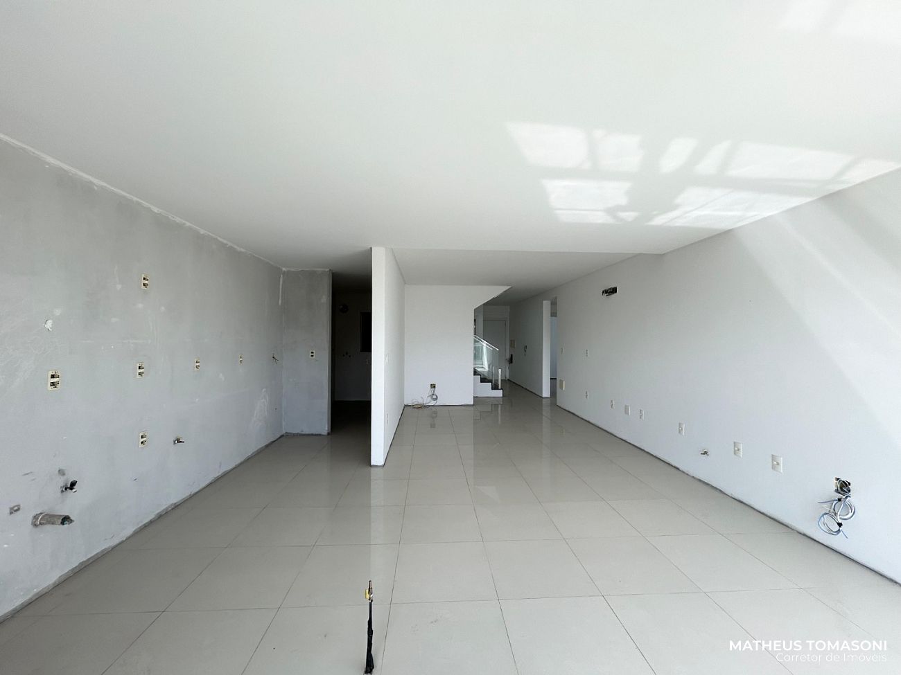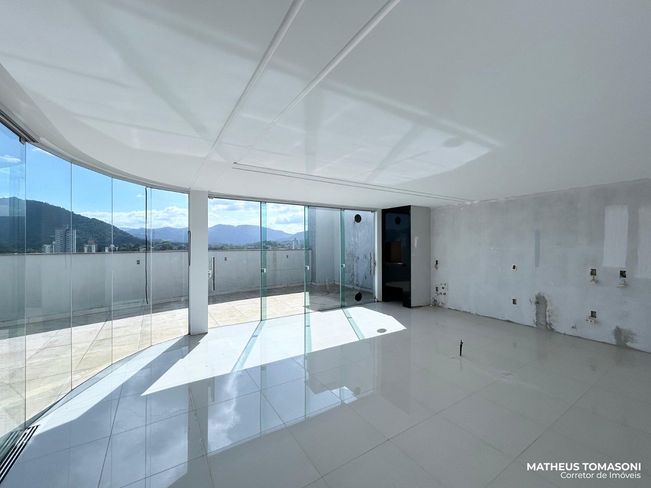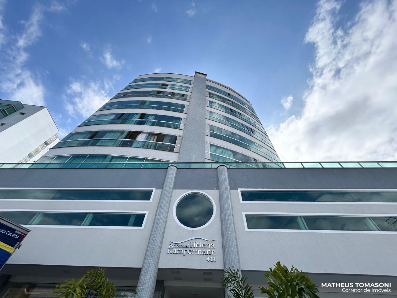 Cobertura duplex do Residencial Helena Kampermann, são 237m² de apto, nunca usado, na 8ª e 9ª laje do prédio, dispõe de living integrado com churrasqueira e fechamento em Reiki, área de serviço, lavabo, banheiro social e três suítes. No pavimento superior, uma ampla área de festas com banheiro e um terraço. Vista livre para o Centro.