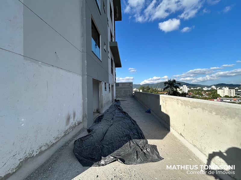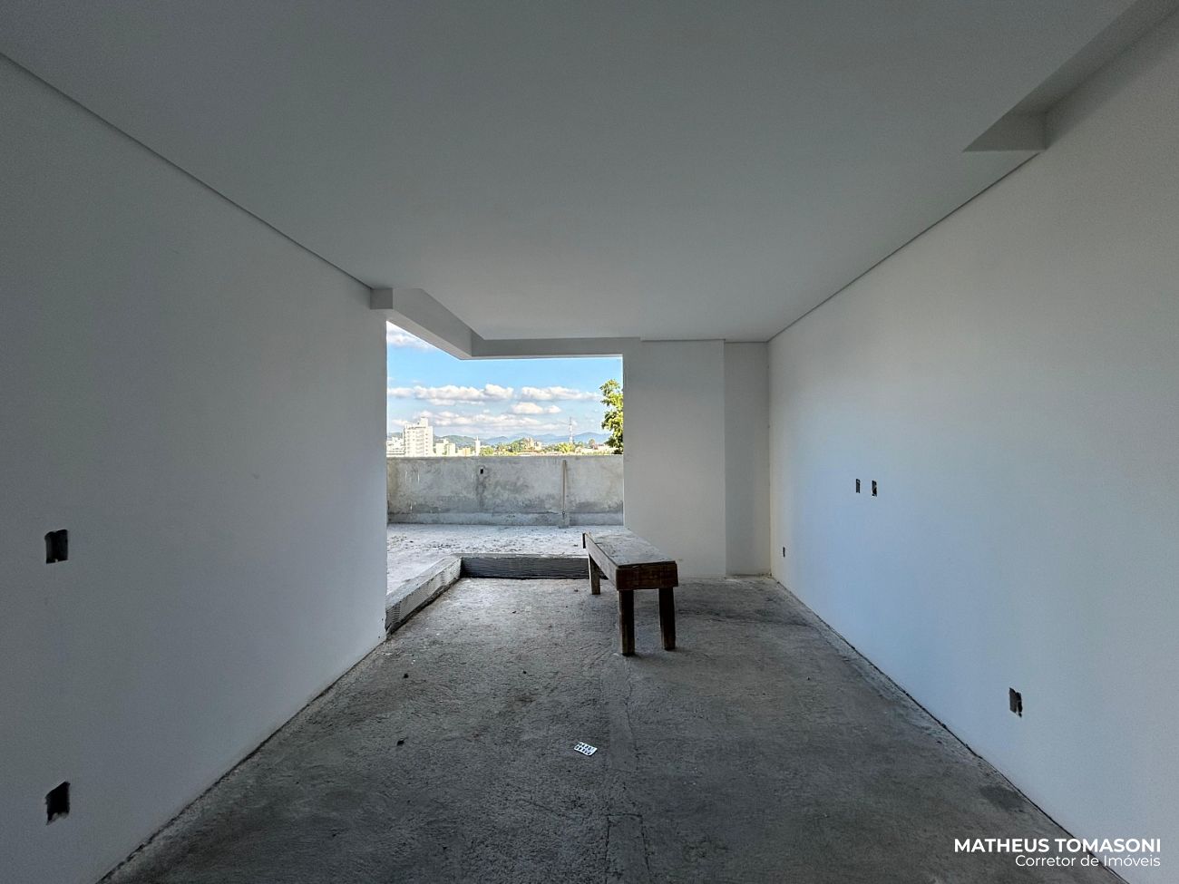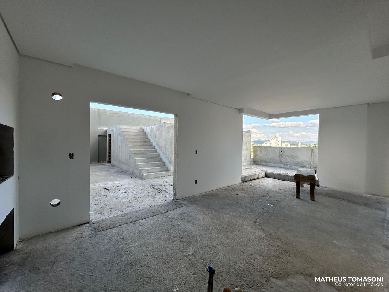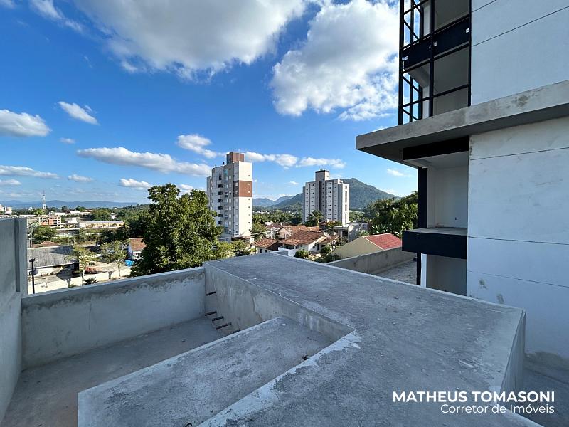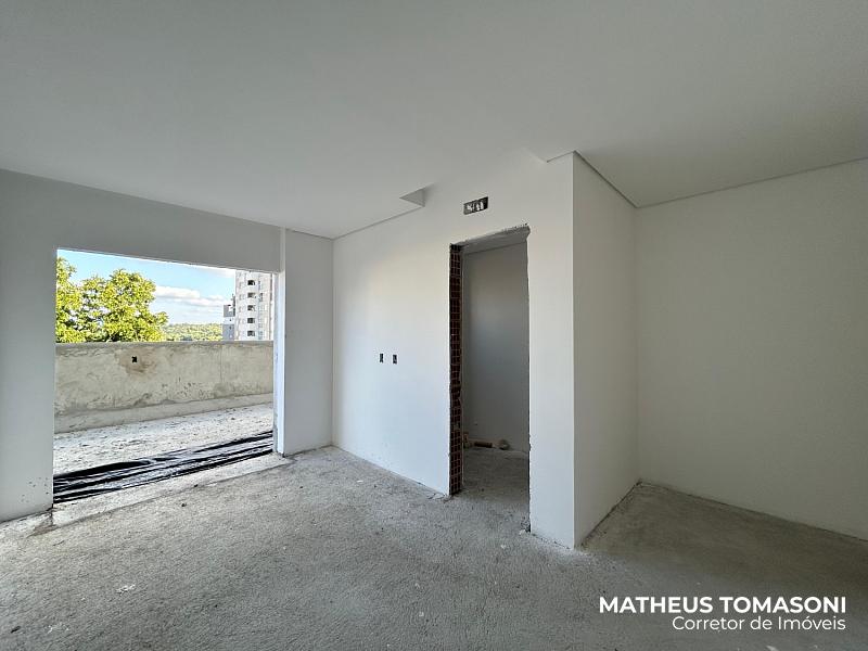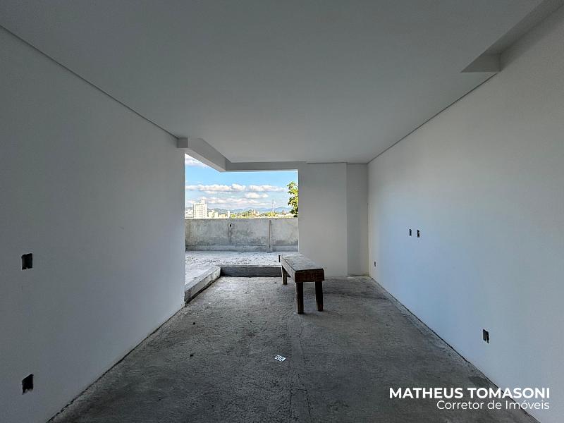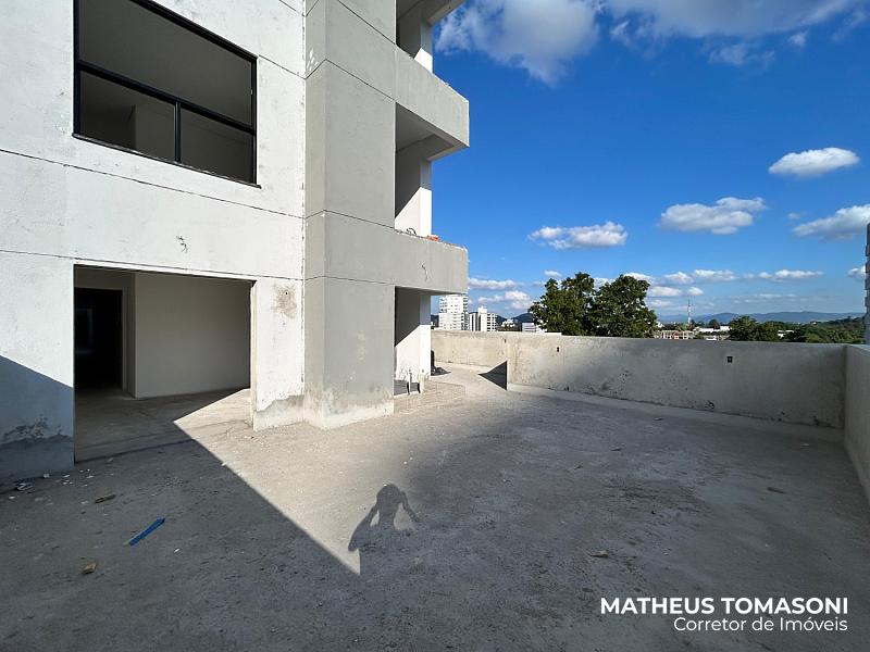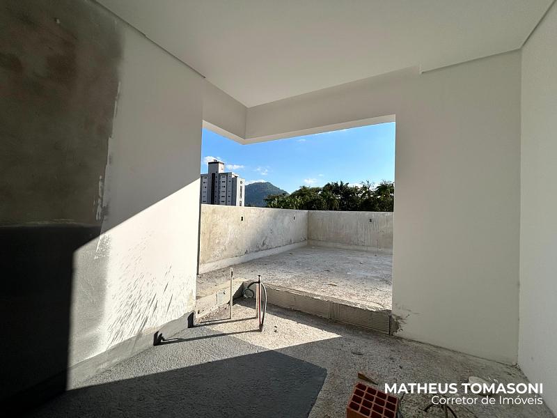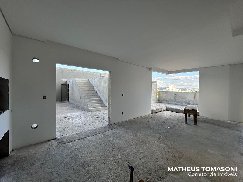São 134m² de apartamento e 195m² de terraço, com living integrado, churrasqueira à carvão, área de serviço, lavabo e três suítes, sendo uma com hidromassagem e todas com acesso ao terraço.