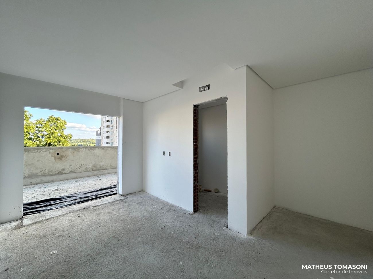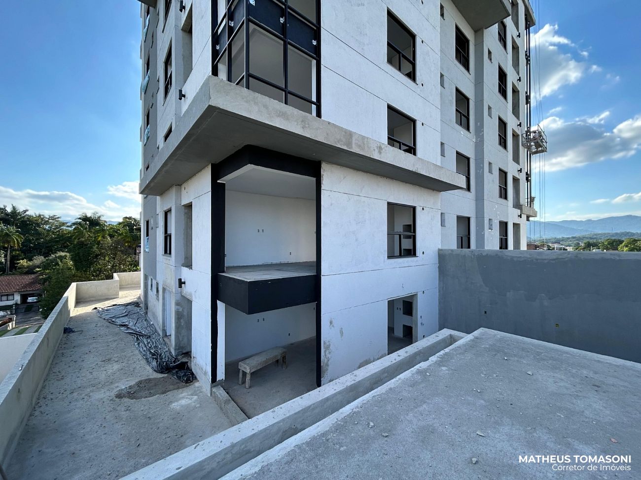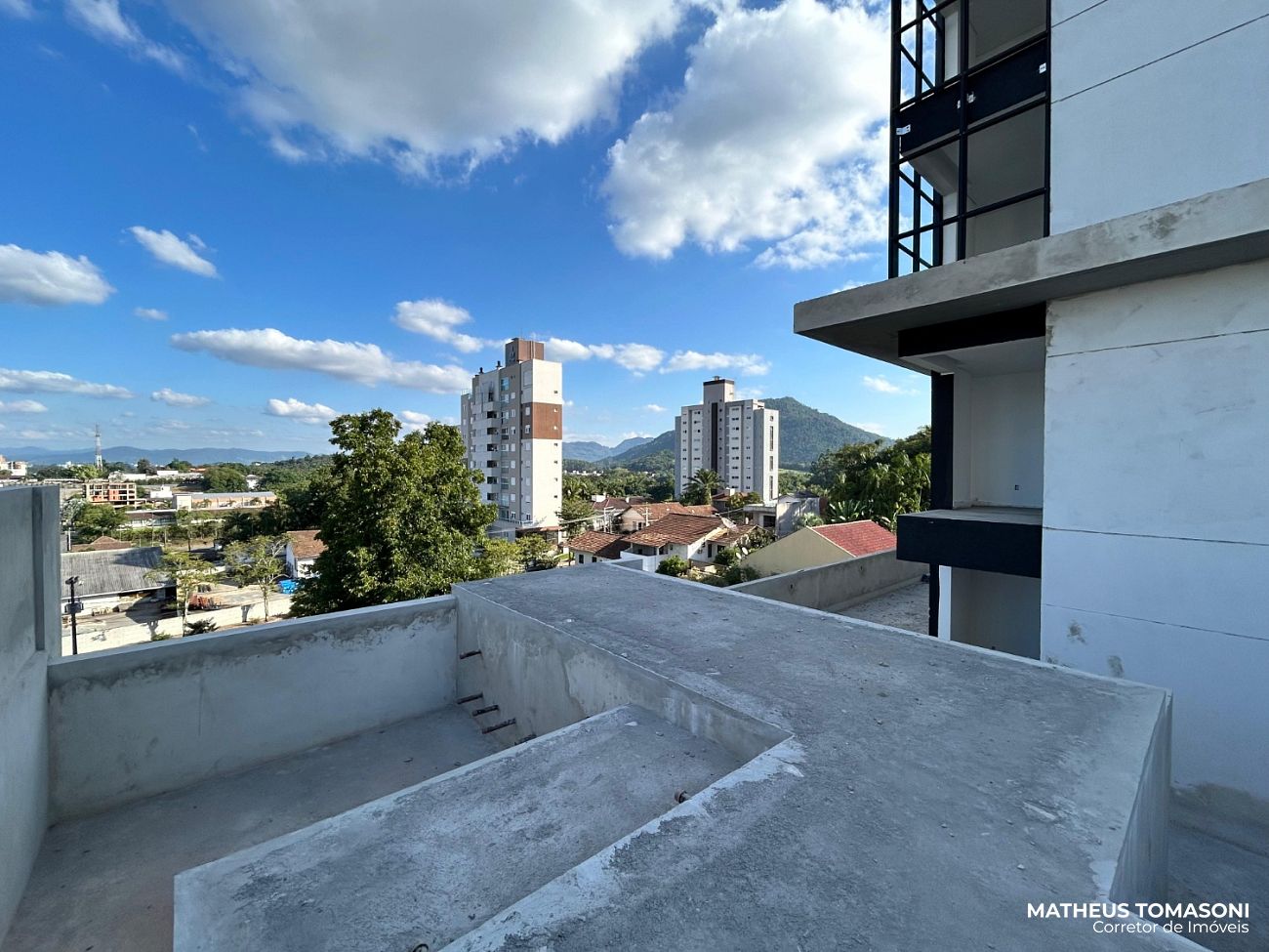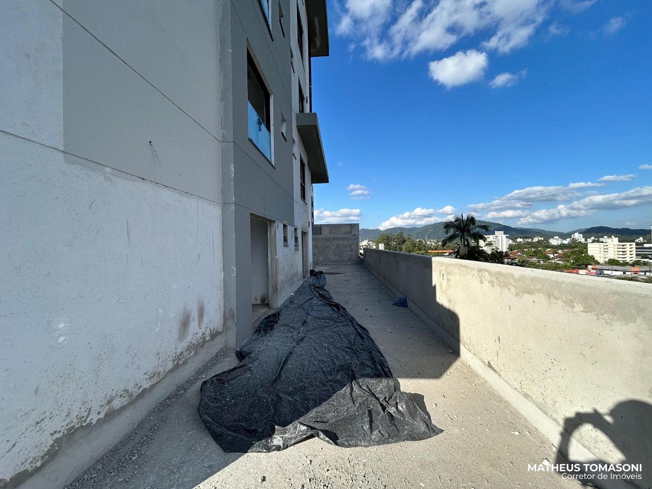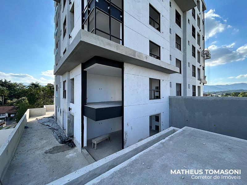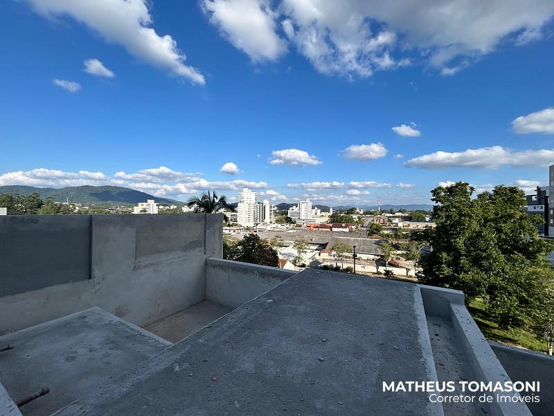 São 134m² de apartamento e 195m² de terraço, com living integrado, churrasqueira à carvão, área de serviço, lavabo e três suítes, sendo uma com hidromassagem e todas com acesso ao terraço.