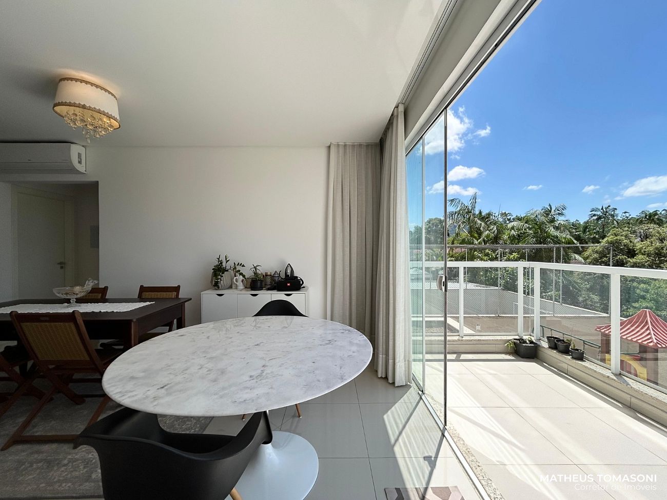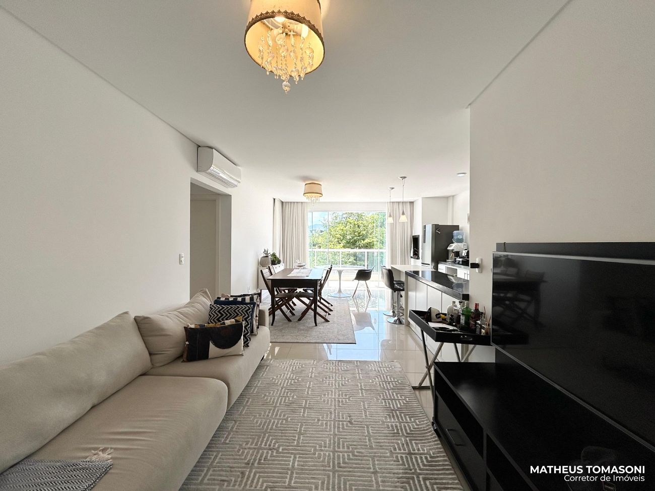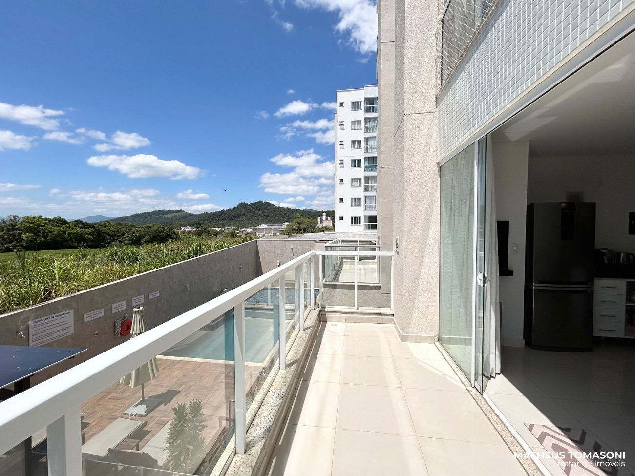 No primeito andar do Res. Grand Village, este apartamento de 94m² internos dispõe de living integrado com churrasqueira à carvão, sacada ampla e aberta, área de serviço, lavabo e duas suítes generosas. Ambientes amplos e ventilados, ótimo acabamento, semi mobiliado e espera para aquecimento de água gás. Uma vaga de garagem coberta e de fácil acesso.