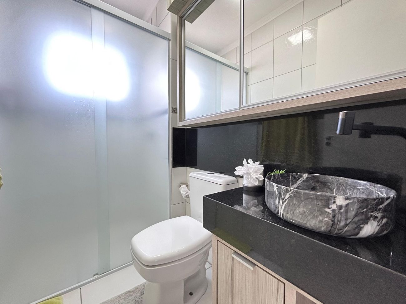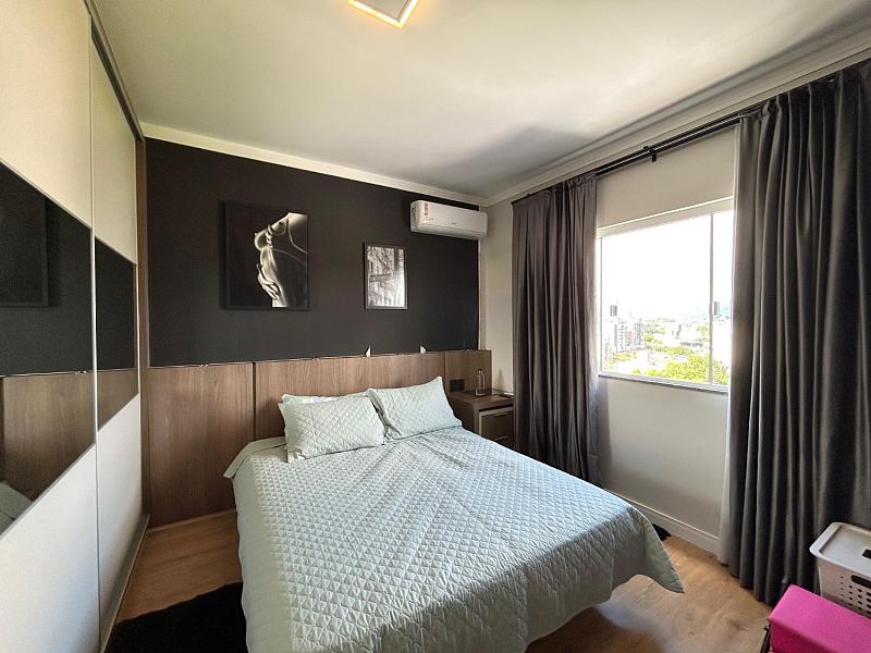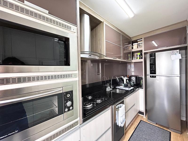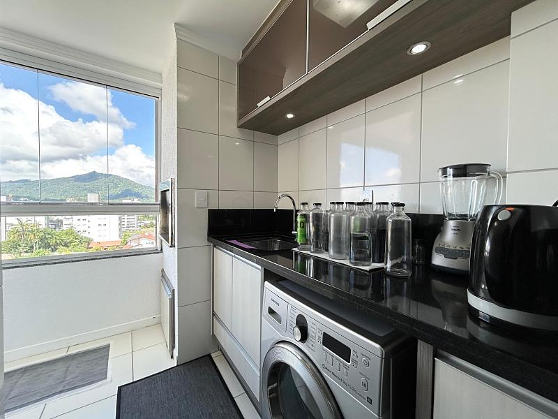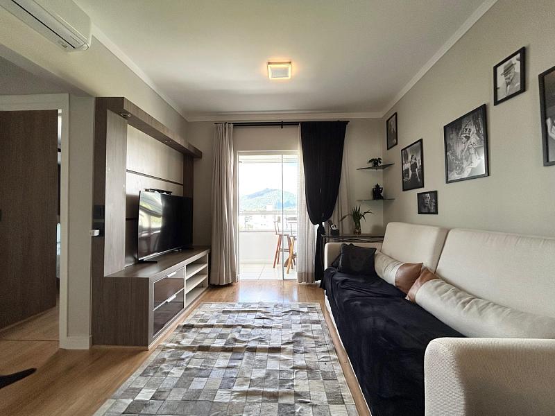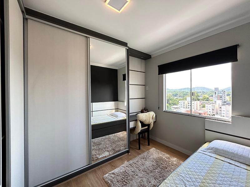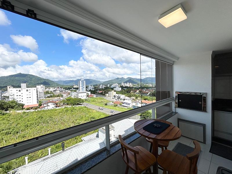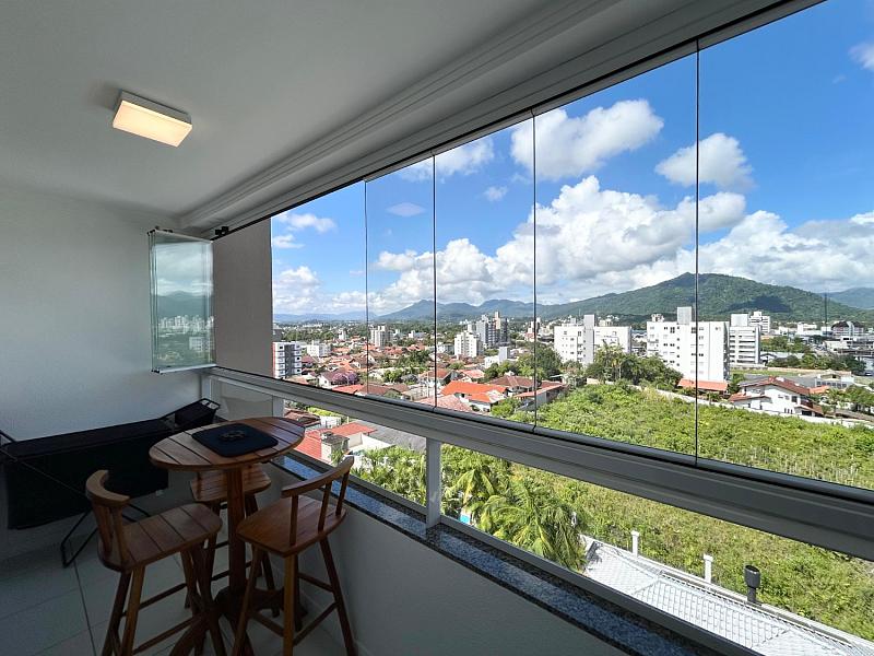 Apartamento totalmente mobiliado em andar alto e com vista livre e panorâmica para o Centro de Timbó, são 62m² de área útil, dispondo de living, cozinha separada, área de serviço, sacada com fechamento em reiki, banheiro social e dois dormitórios.