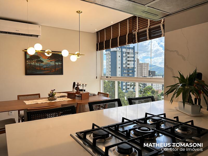 Apartamento com móveis planejados e excelente acabamento, projeto de iluminação e suas janelas são em PVC anti ruído.