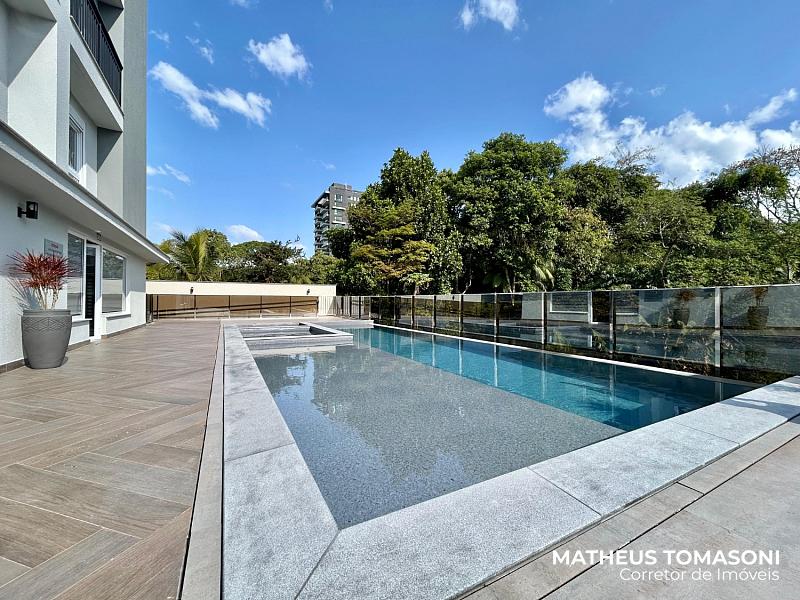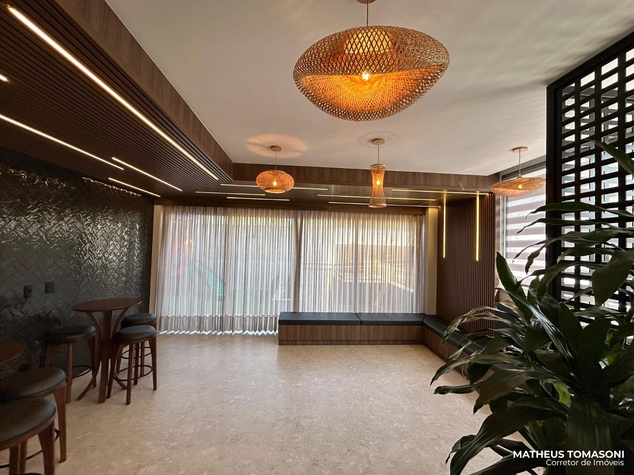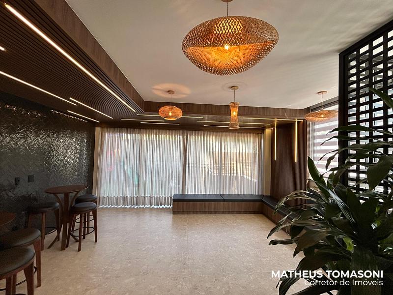 Este oferece um living integrado fechado com pele de vidro, cozinha espaçosa com churrasqueira à carvão, área de serviço espaçosa, lavabo e três suítes generosas, sendo uma com espaço de closet.