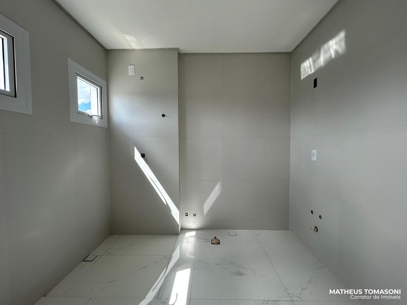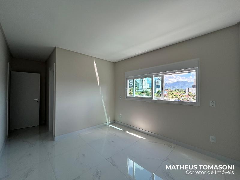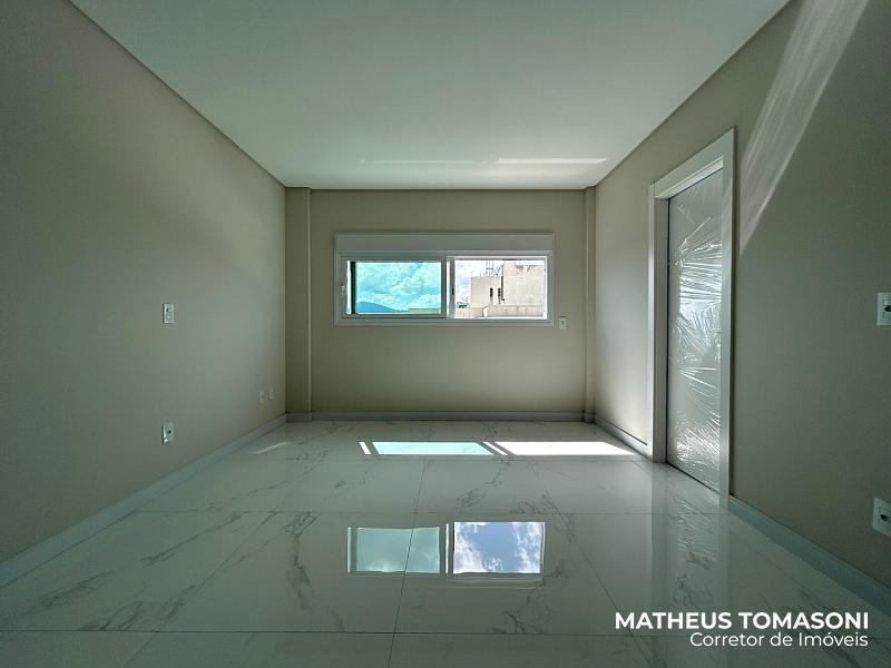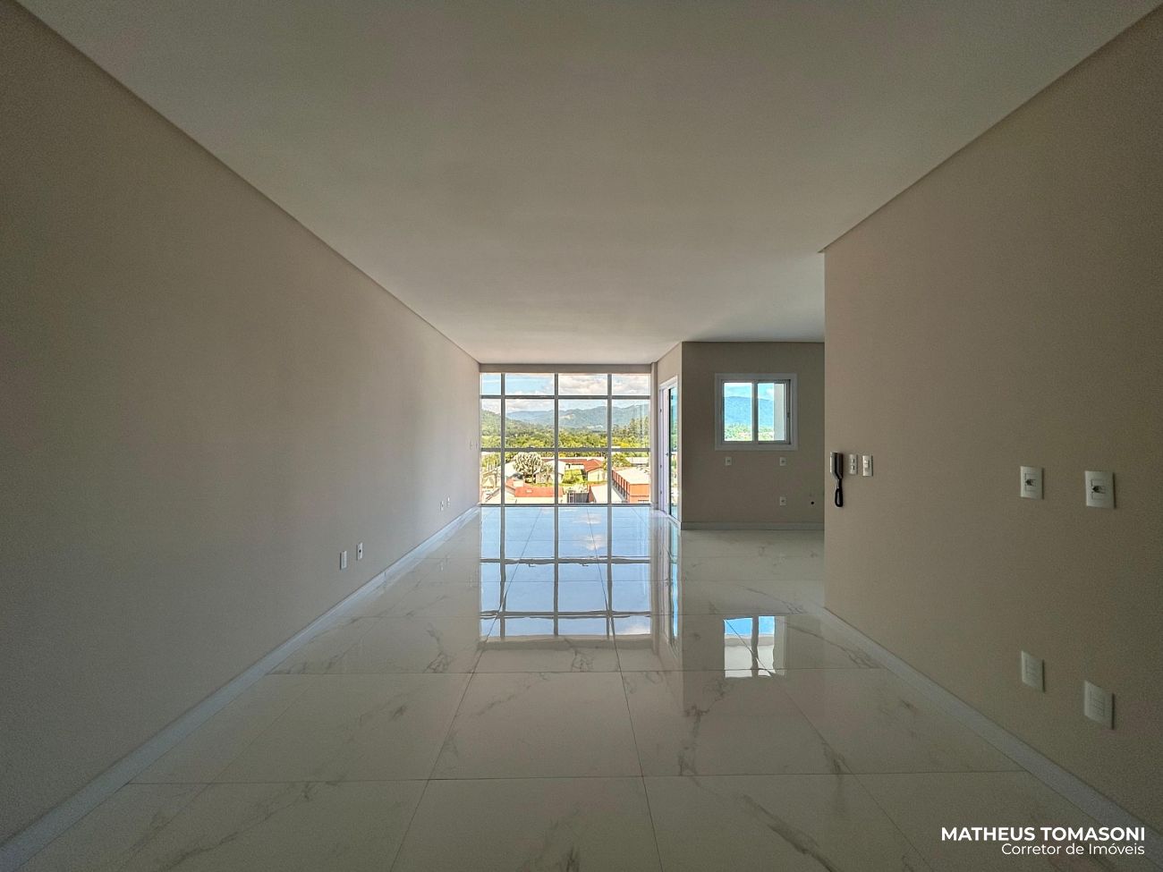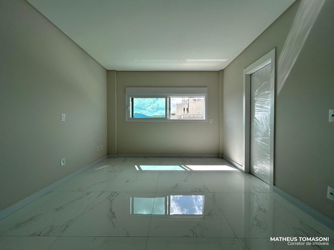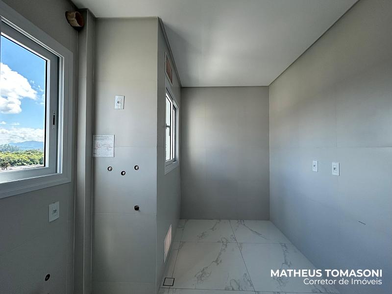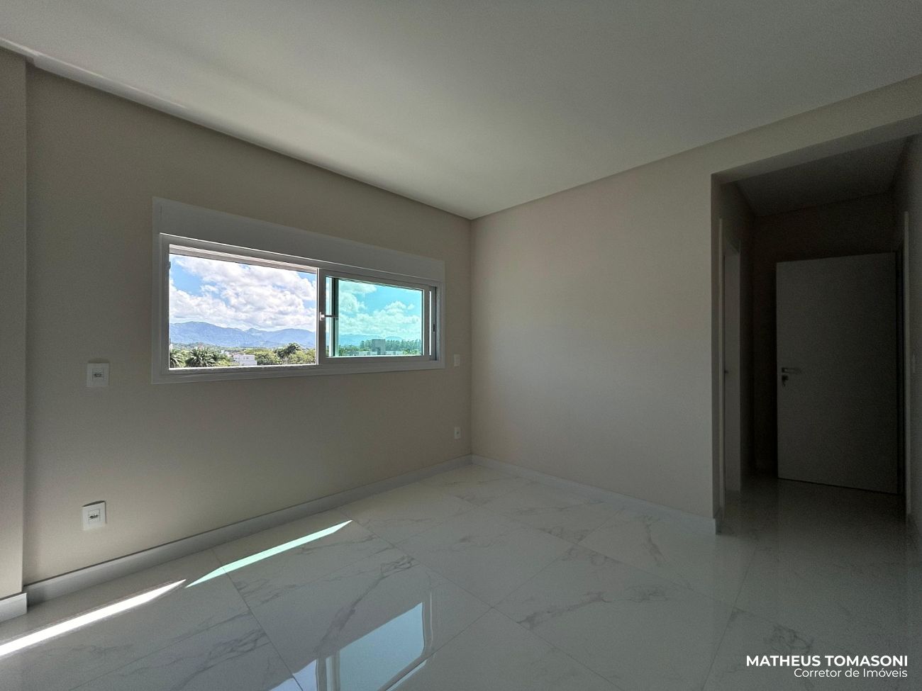 Apartamento com 160m², living integrado com pele de vidro, sacada aberta com churrasqueira, área de serviço ampla, lavabo e três suítes, sendo a principal com espaço de closet. Oferece três vagas de garagem boas.