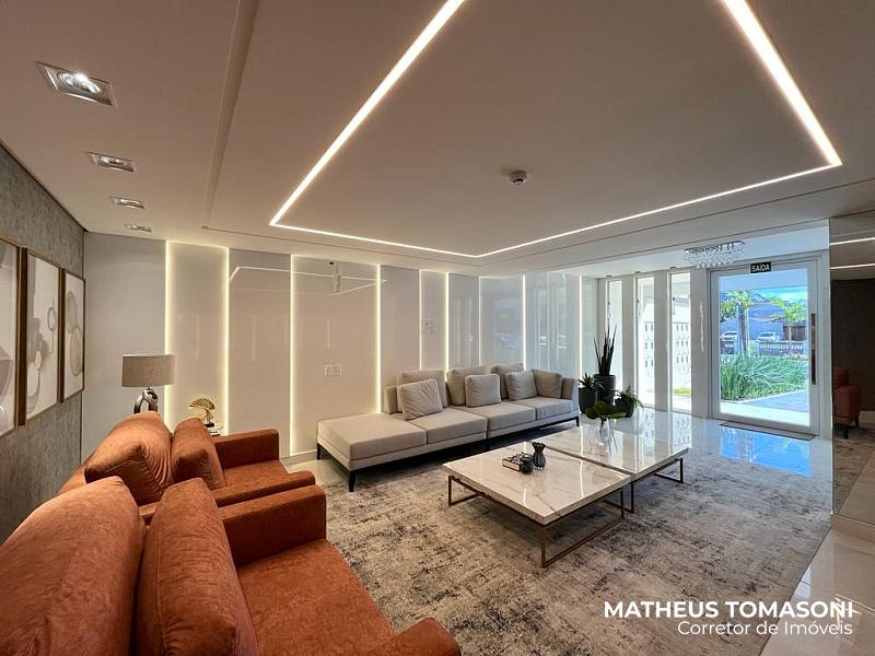 Oferece um living integrado, cozinha, sacada frontal, lavabo, banheiro social, três suítes sendo uma com closet e sacada generosa aos fundos com churrasqueira à carvão.