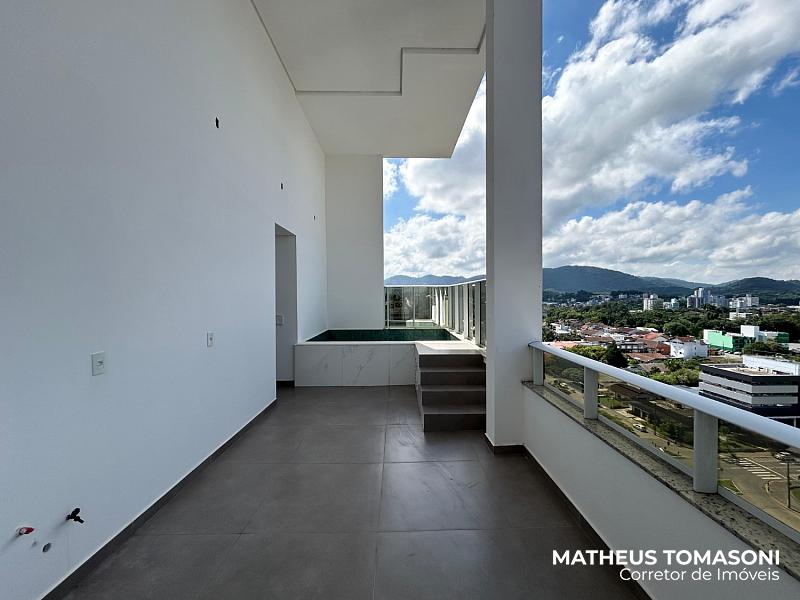 Apartamento diferenciado na principal avenida do Centro de Timbó, tem 183m², e um detalhe especial, uma piscina privativa com vista panorâmica para a cidade.