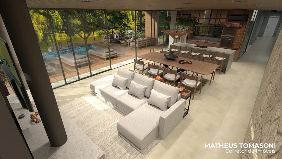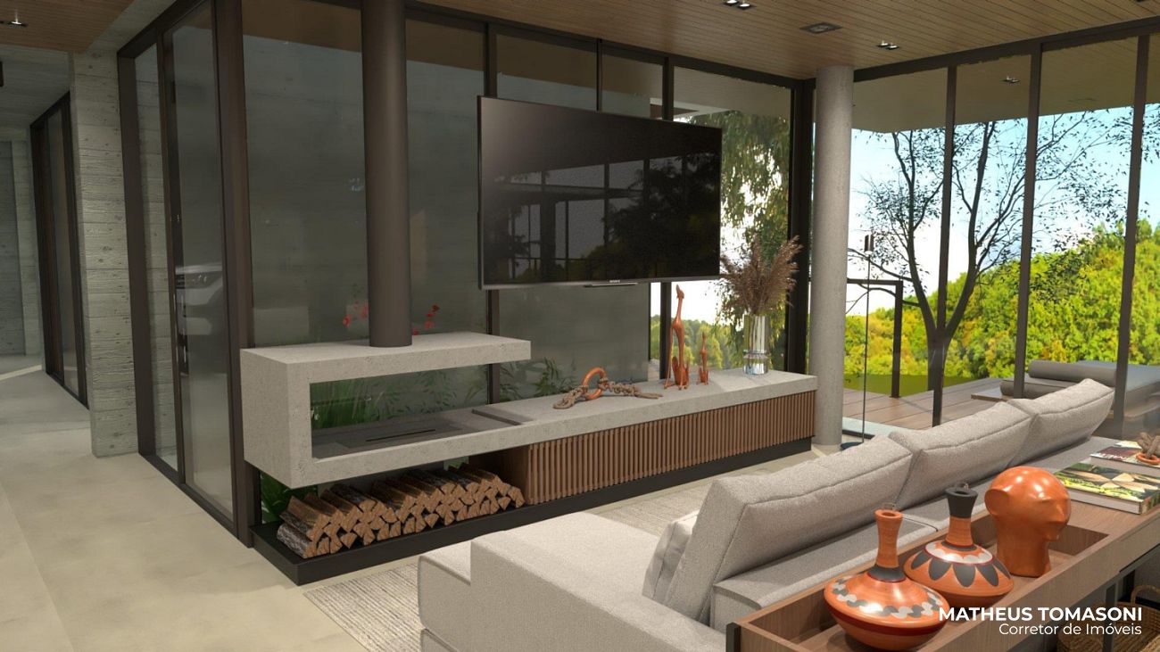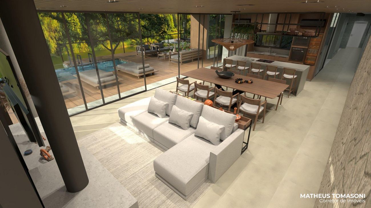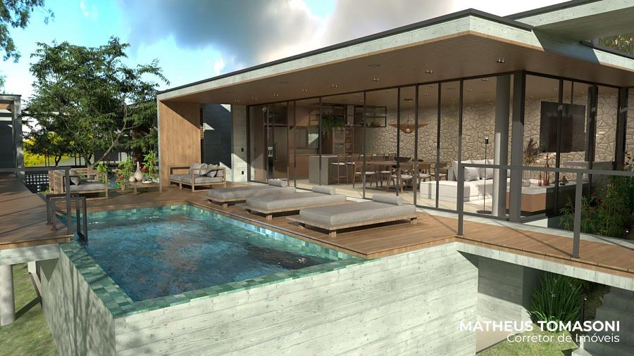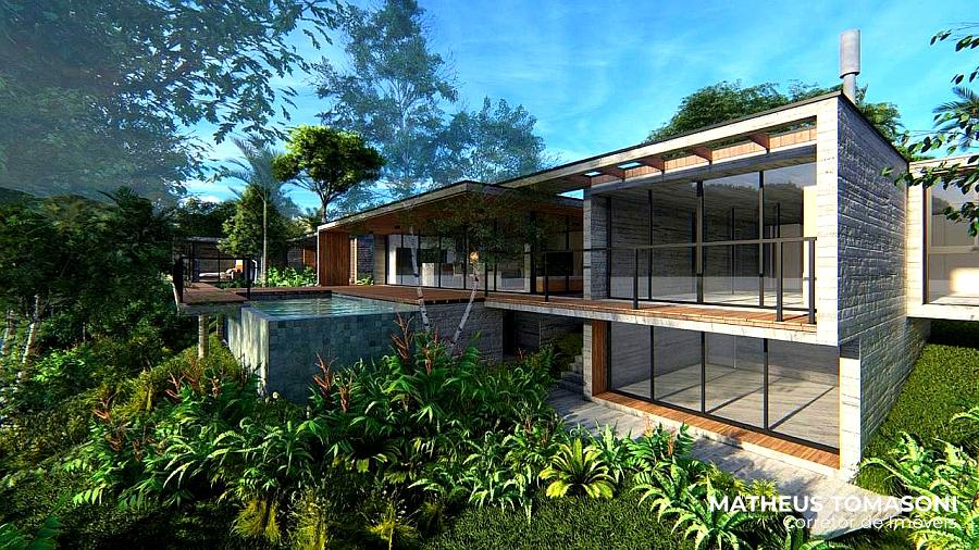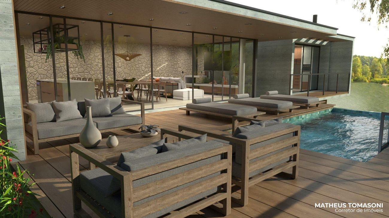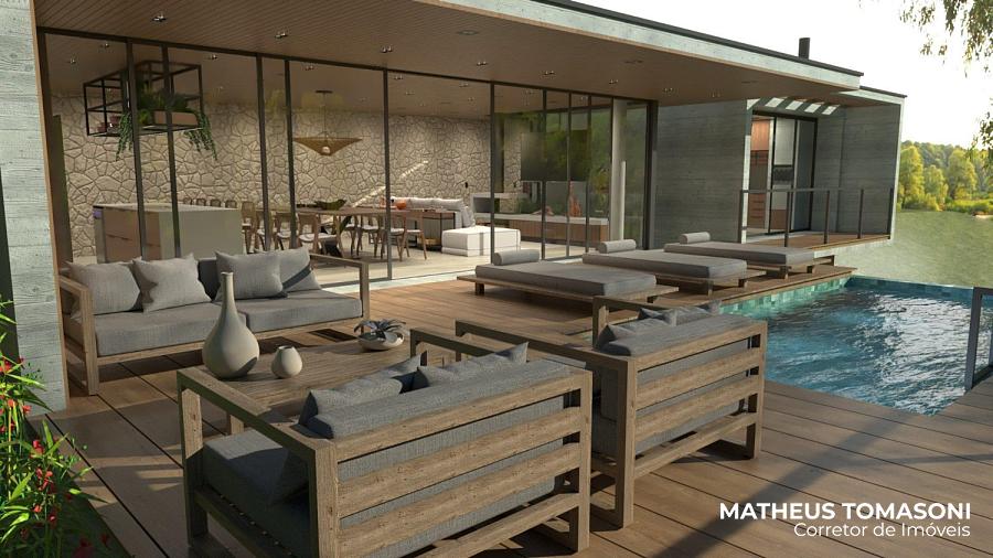 Ela tem muitos detalhes que tornam ainda mais especial, entre elas, uma sala de estar com mais de 60m² sem nenhuma viga, uma bela piscina para o lago e muito arborismo ao redor.