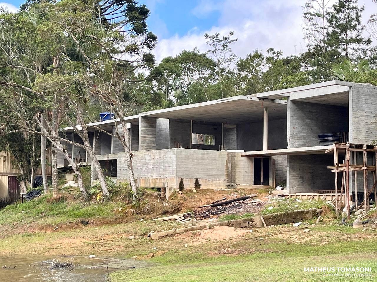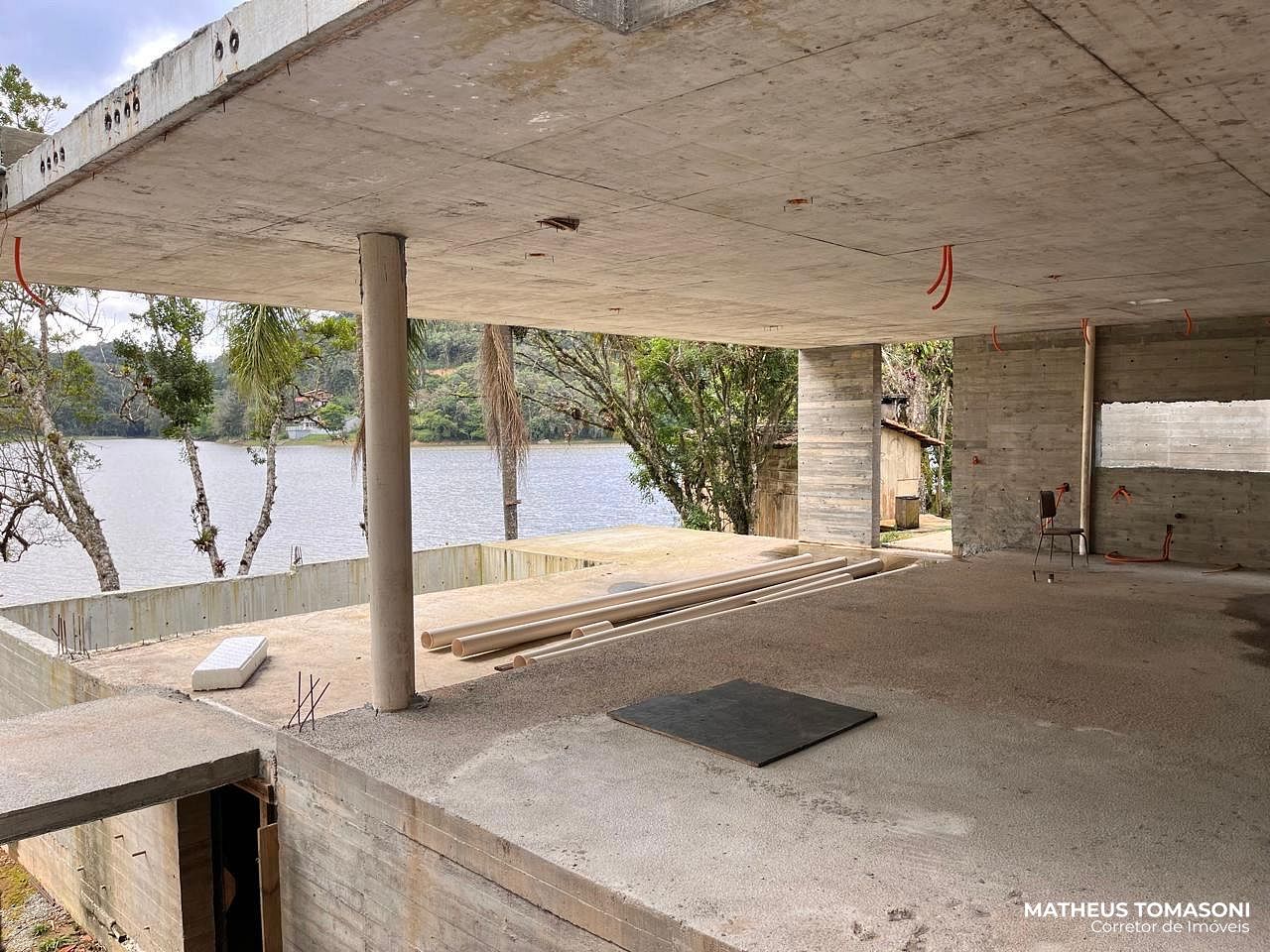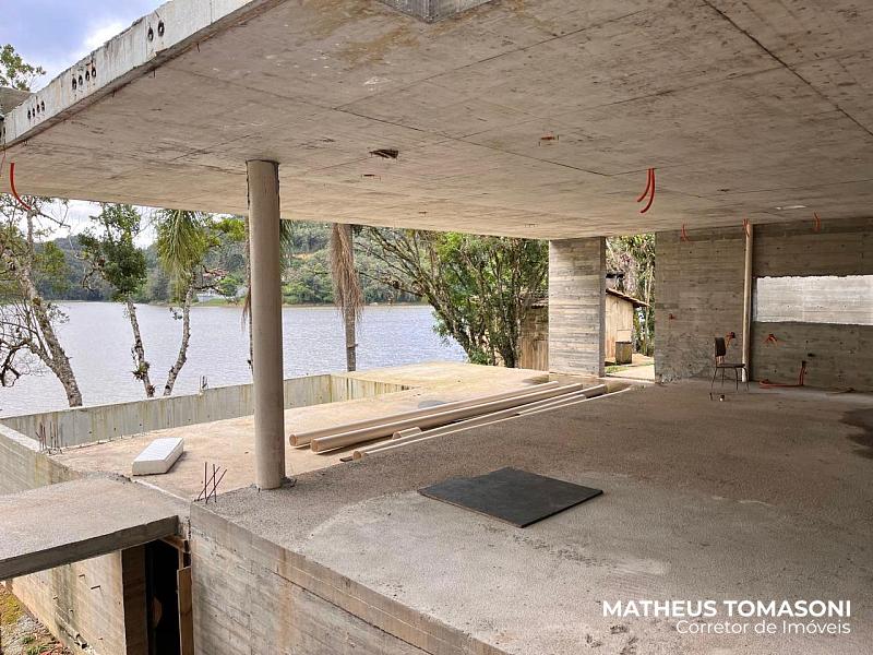 Projeto bem atemporal, muita tecnologia na execução, uma arquitetura incrível buscando evidenciar o lago em todos os cômodos. Obra estrutural parcialmente concluida, em fase de fechamento de esquadrias e aguardando o novo comprador finalizar com acabamentos do seu agrado.