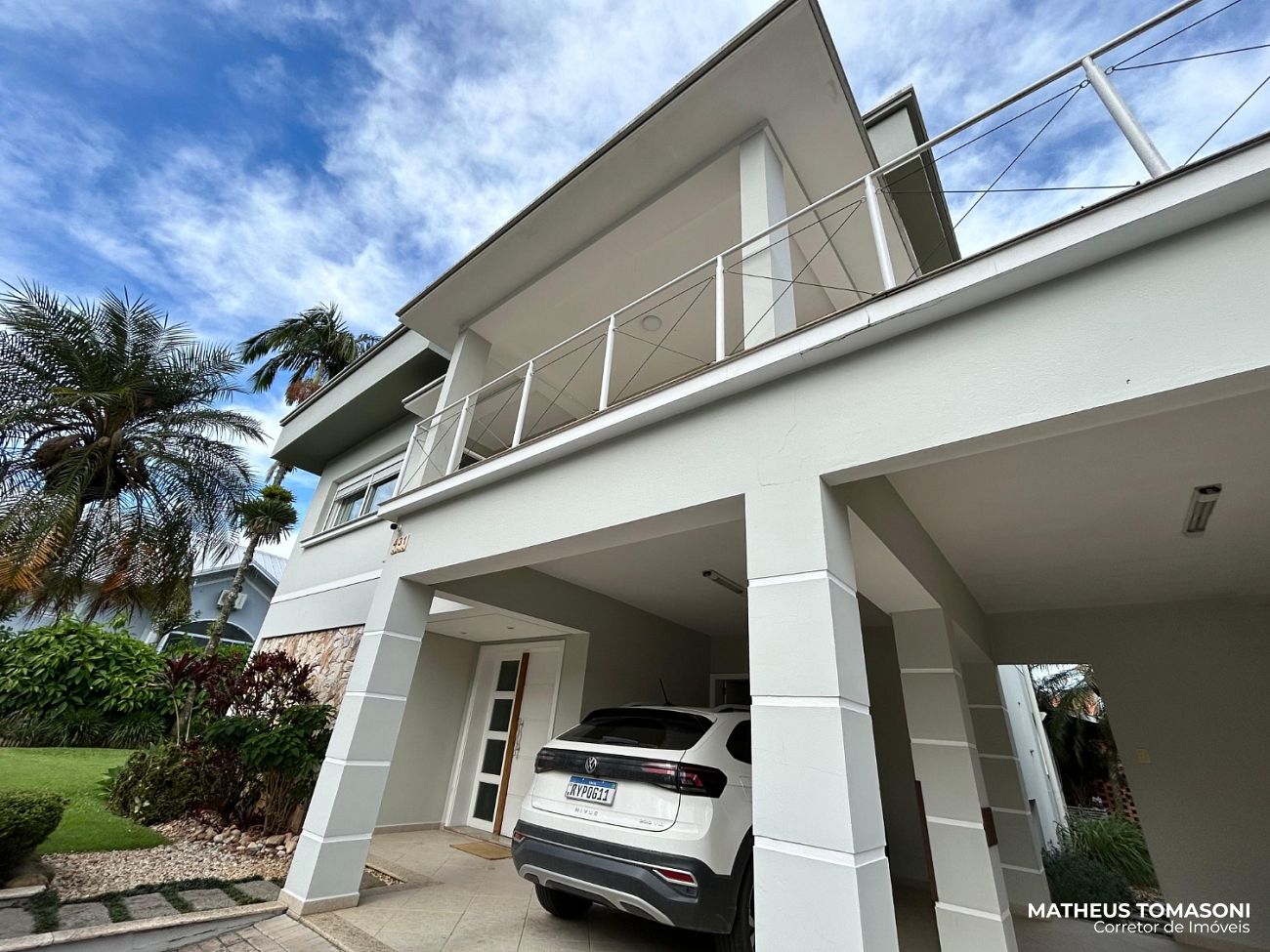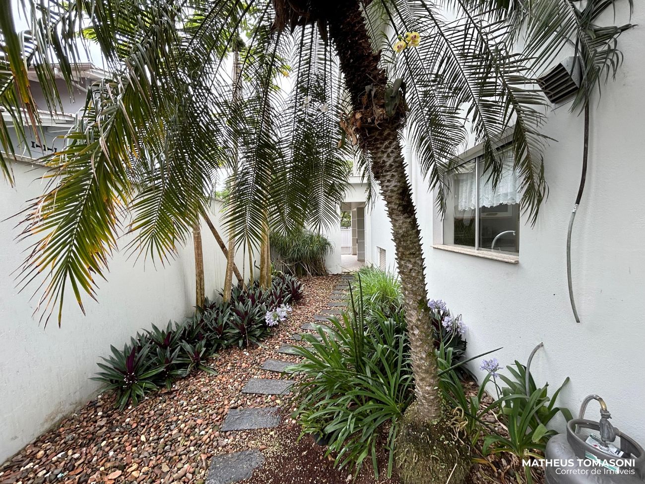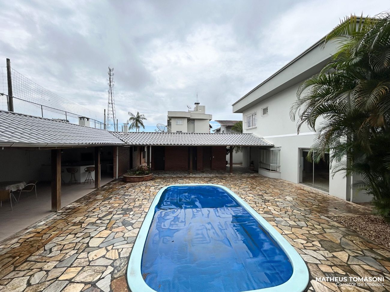 Terreno amplo com um grande espaço de pátio, permitindo um estacionamento interno. Espaço aos fundos com piscina e edícula oferecendo uma área de festas e apoio ao imóvel com banheiro, área de serviço, depósito, casa de máquinas e uma suíte.