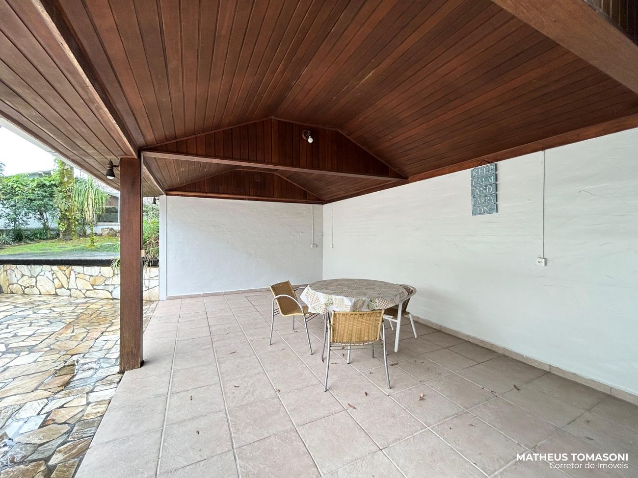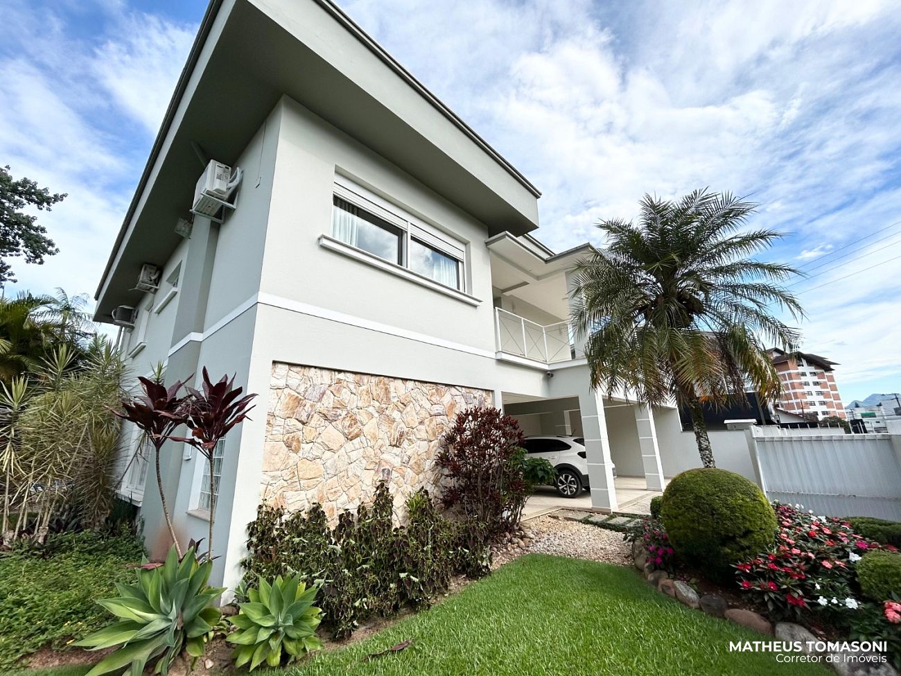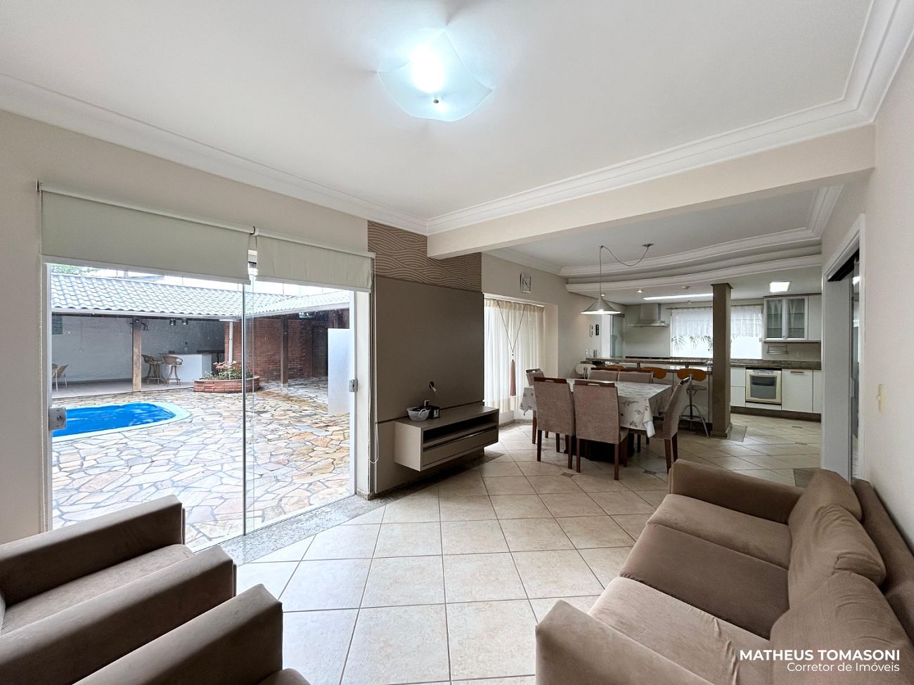 Terreno amplo com um grande espaço de pátio, permitindo um estacionamento interno. Espaço aos fundos com piscina e edícula oferecendo uma área de festas e apoio ao imóvel com banheiro, área de serviço, depósito, casa de máquinas e uma suíte.