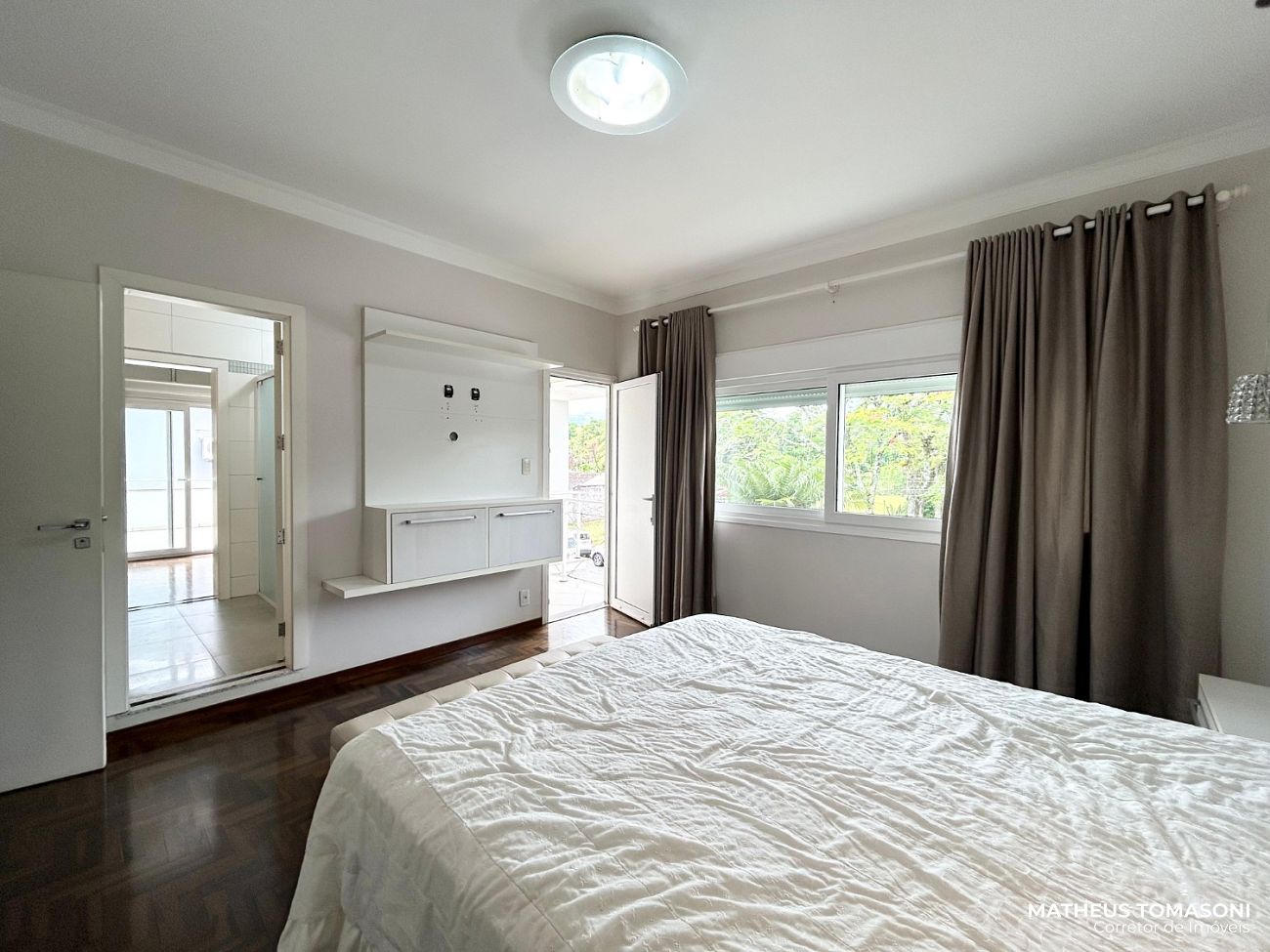 Pavimento superior: Uma suíte grande com closet e terraço, outra suíte com closet, dois dormitórios e banheiro social.