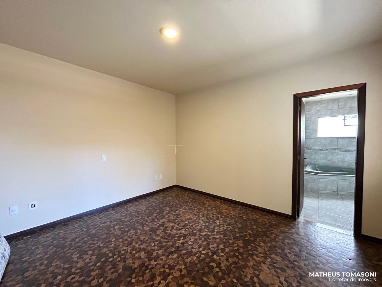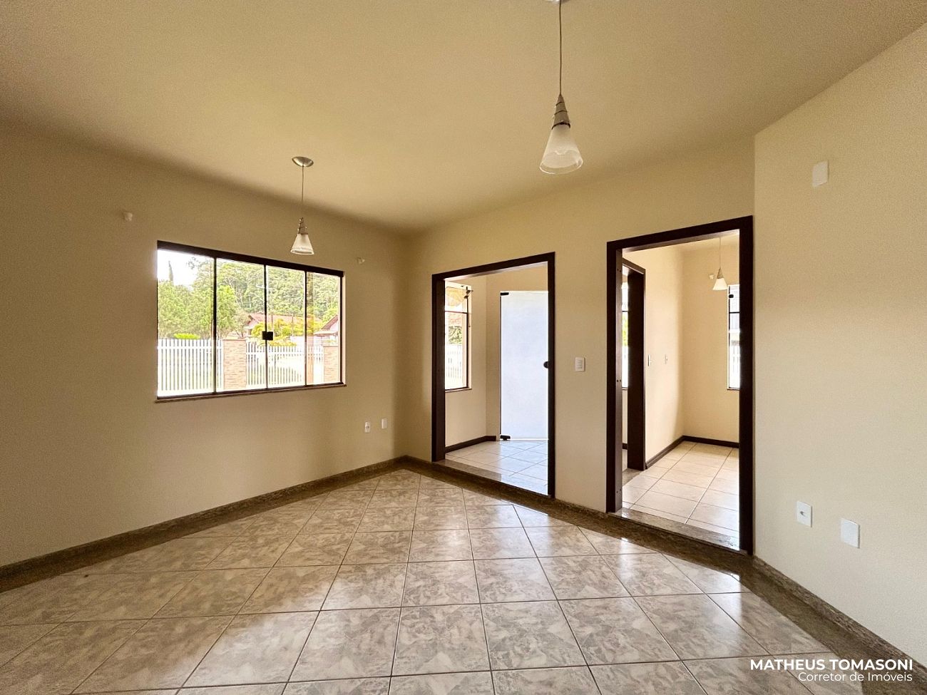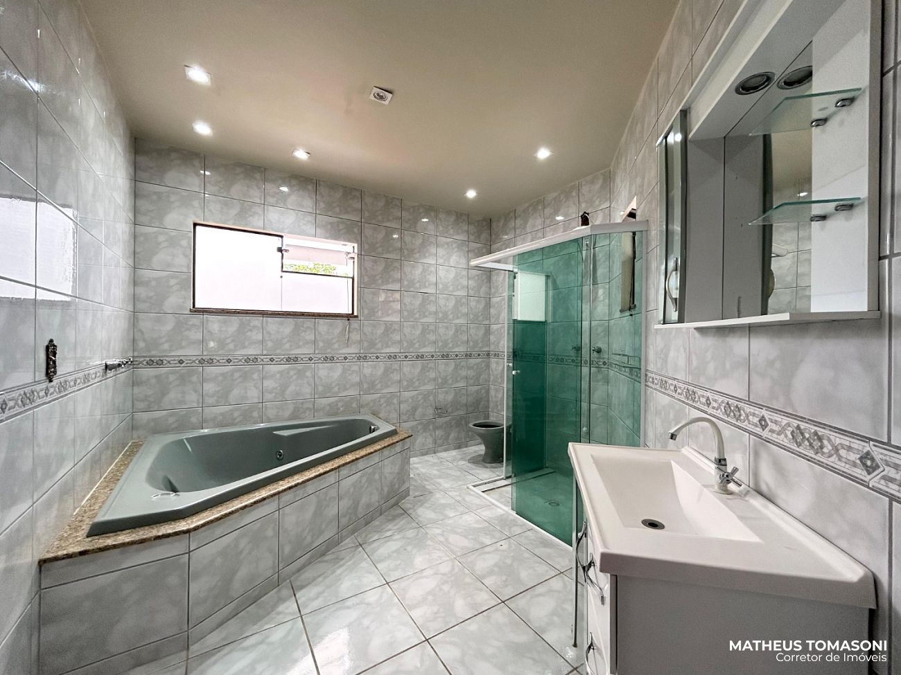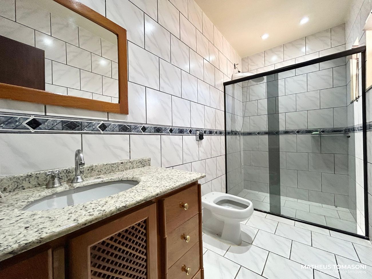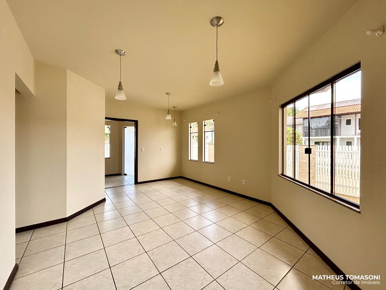 Dispõe de sala de TV, sala de jantar, cozinha, despensa, área de serviço, banheiro social, dois dormitórios e uma suíte com banheira de hidromassagem. Garagem coberta para dois carros e mais espaço de pátio.